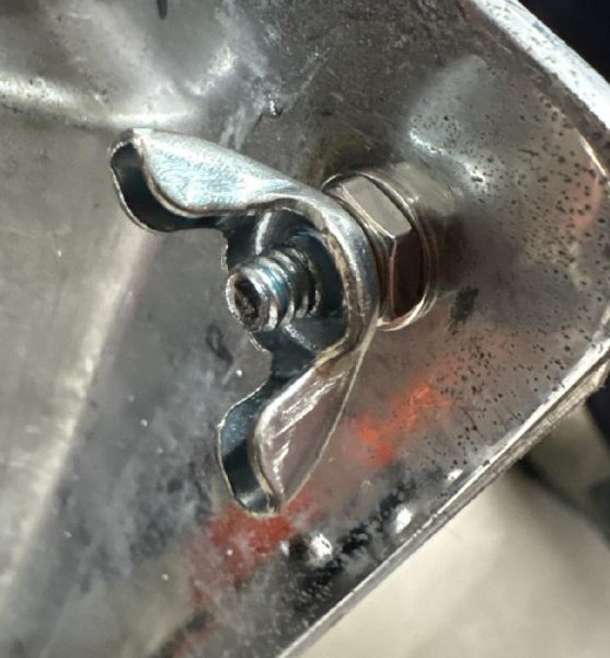 I installed the stainless flat washer, a little blue Loctite and the polished nut. Careful not to over-tighten it, I added the lock washer and then the wing nut. Bada bing I was done and went onto the next fastener replacement until all four were completed.