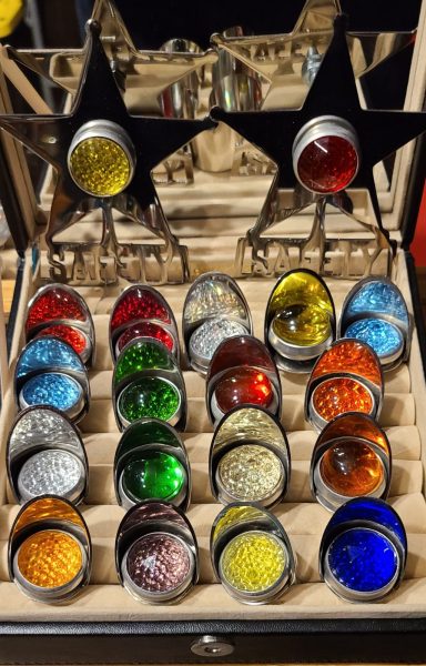 Red Fox Enterprises made wild authentic pressed glass jewels in bright, vibrant colors since 1974. Plus they’re all handmade with precision and care in the USA.