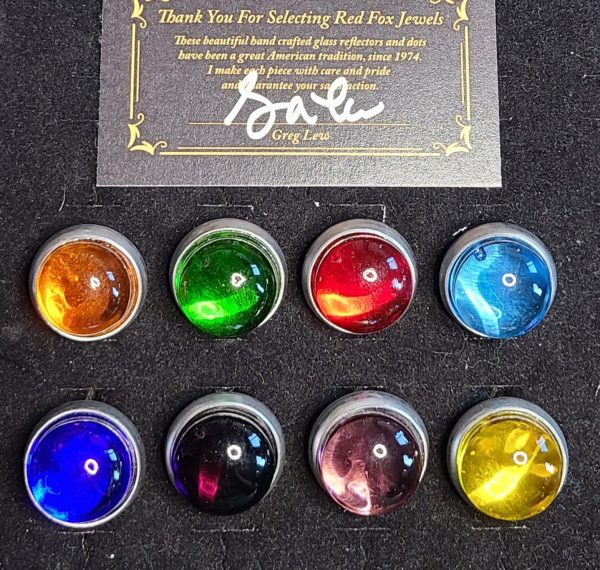 I just received my VLXAFL official South Dakota Veteran’s license plate and I mounted it, and then discovered I had a set of these thick colored glass reflectors in 5-Ball orange. I immediately loosened the fasteners holding the Vietnam Veterans plate and replaced them with the Red Fox units. They ain’t plastic bullshit, but the real deal and packed with a signed card of authenticity and lifetime guarantee.