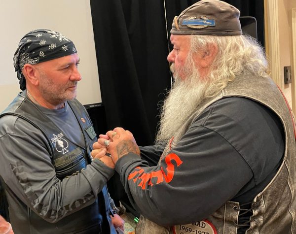 This was the biggest Meeting of the Minds in history, with over four hundred people representing at least forty states. The convention room was packed to standing room only to hear Louisiana’s Republican Congressman Clay Higgins speak our language. He raised the roof with his fiery opinions and ‘don’t start no shit, won’t be no shit’ rhetoric. After he spoke, I was standing nearby as he was approached by Chopper Gilmore, a legend in our world on many levels; Veteran, Chaplain, patch wearer, brother, friend, and voice of reason. I watched those two Vets clasp hands, and then embrace in prayer. Then others in different patches joined in the circle of prayer with them. I found myself in a circle of preachers and a Congressman and 1%ers, and I felt God, in that casino. Of course, Chopper Gilmore’s name, the one his mama gave him… is Charlie.