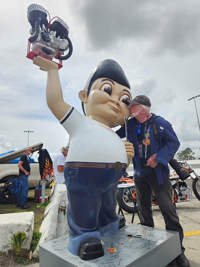 If you made it to Sons of Speed or Warren Lane’s Bike Show at the Broken Spoke Saloon there is a good chance you got to see Bad Boy Berry and if you were lucky have your photo taken with him and maybe even sign the stand.