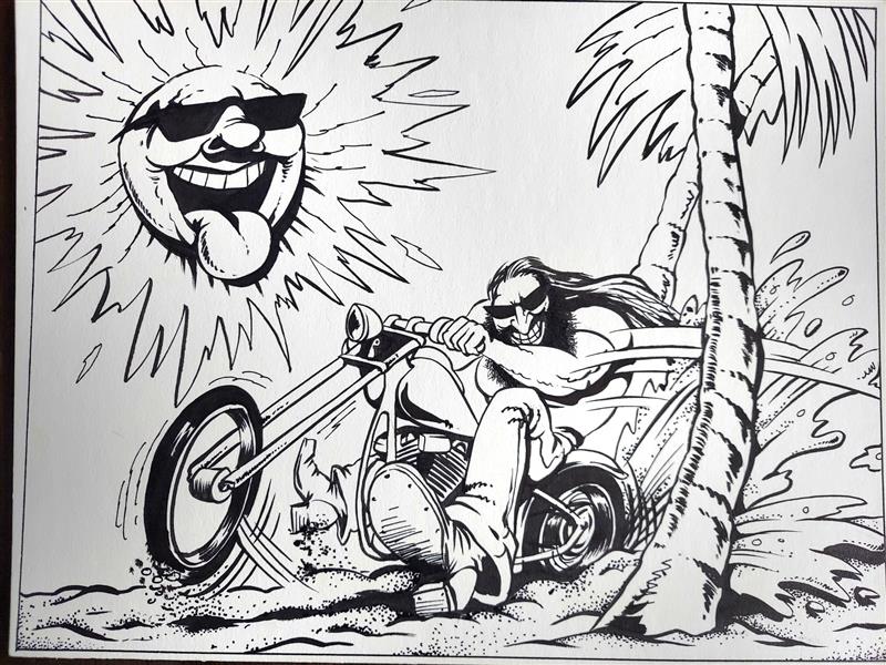 Bruno replaced his gas cap and looked at his tank. No one fucks with a biker’s ride he thought to himself. “Did you bring the grand?” Bruno asked as his eyes lifted to meet the gaze of the oncoming outlaw. He quickly moved around his Sporty to confront moderate sized club member in all leather, his vest flapping in the desert wind the bat above his shoulder while he charged.