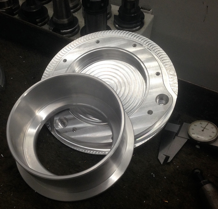 Bright and early Tuesday morning Marc Susman and his Crew dedicated a 5-axis machine, a programmer and operator to attack the final designing and machining of our latest air plenum.