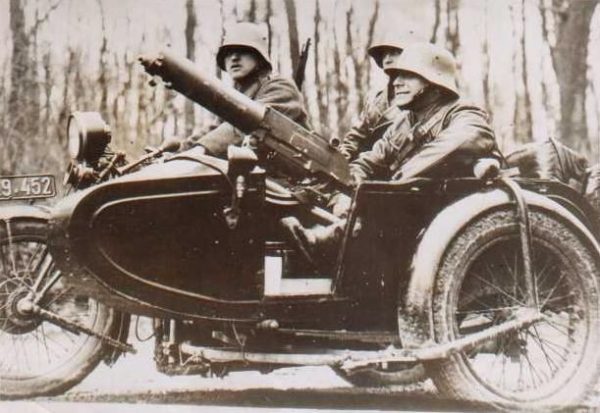 A Guardsman of 1st Battalion, Grenadier Guards, 7th Guards Brigade, 3rd Division rides a Norton Model 18 motorcycle fitted with a special mount to accommodate a Thompson sub machine gun, allowing the rider to fire while in motion. Swanage, Dorset, UK The 3rd Battalion was in the 1st Guards Brigade attached to the 1st Infantry […]