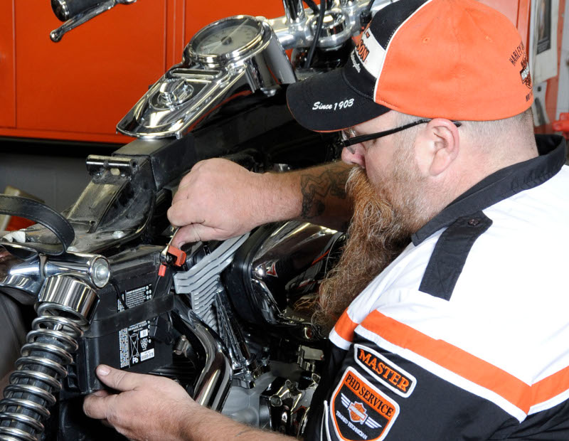 Which is why a motorcycle, that may often be parked for some time between rides, is especially prone to battery damage from deep self-discharge, even during the riding season. The best way to prevent premature battery death, according to Harley-Davidson, is by keeping a parked motorcycle plugged into a maintenance-type battery charger like a Harley-Davidson Battery Tender. Unlike a standard battery charger, Harley-Davidson Battery Charger products feature internal circuitry that charges a motorcycle battery at the proper rate and then changes modes to protect the battery from over-charging.