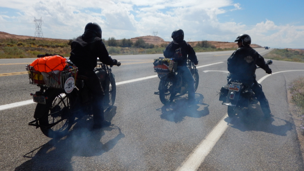 We arrived in Page, AZ for the night. 10 bikes were on the sweep trailers and more had been picked up by their crews. Where some people are done for the night many others are busy with maintenance and repairs. I am doing the same but in my case it is for the riders. I finally got to my room about 9pm but tonight I got to eat supper for the first time in 4 days. Good night, sleep tight – tomorrow we visit the Grand Canyon! For more information about the Motorcycle Cannonball including statistics, visit www.motorcyclecannonball.com