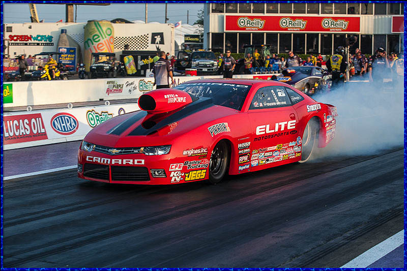Although there was really no way for her to be the magic number 100 this weekend, just due to the class order they race in for the finals, with Pro Stock racing prior to the funny cars and dragsters. However as the day wore on and racers were eliminated it came down to Erica as the last lady standing and whose Pro Stock Camero just seemed to get faster with each pass! As the sun started to set, it was Erica and Allan Johnson we found sitting beneath the tower, in a rematch of last years PS final, which Allen took, waiting out a small rain delay.