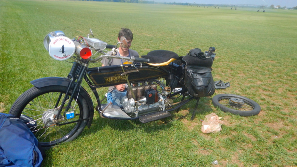 On the edge of town at Mile marker 3 was my first stop for a breakdown. At first I saw what looked like a bicycle up ahead and a car pulled over. I was going to have to get used to spotting these bikes, I almost rode right past them. The days was hot and top speed for many bikes was 35-40 mph. The East Coast traffic is heavy and there were many lights to contend with. In the early 1900’s motorcycles were not built for highways and traffic so challenges were bound to ensue. The 154 mile route that took us through 4 states was littered with breakdowns. Following the riders was a Short Bus called the bus of shame. According to the rules, when the bus arrives you have 15 minutes to make a decision. Load the bike or try to wing it and call for your own help if you need to be picked up. There are 2 trailers for bikes. At the end of the day there were 27 bikes that needed to be towed and 63 arrived in York, PA with perfect scores. One motorcycle was lost as it burned. Condolences to John Pfeifer #36 from Texas for the loss of his beloved 1916 Harley Davidson.