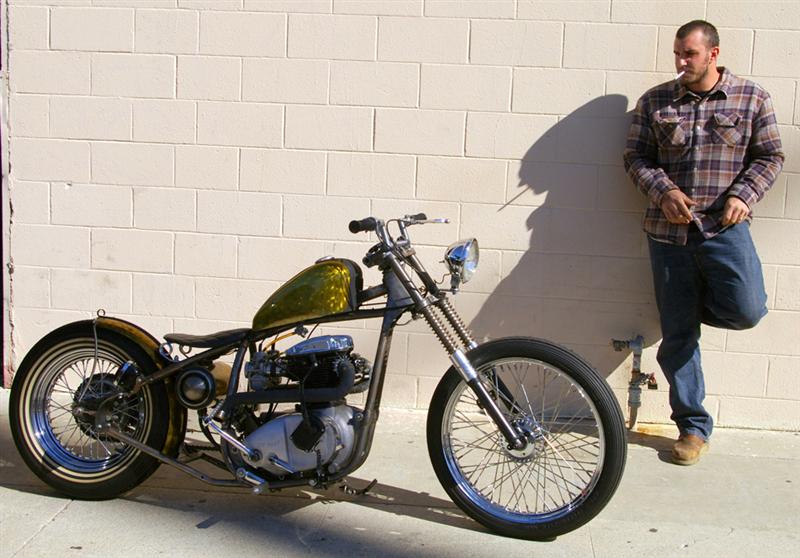 Fortunately the Beezer was rescued by Robby Sclafani who lives in Rancho Cucamonga, CA, just a couple houses down from his buddy Miguel Garcia and his Mig Baron Kustoms, a “home garage ” shop that specializes in bobbers of all flavors, Brit, Metric, Harley-Davidson. The “garage” is well-equipped with everything from plasma cutters to lathes, but the “ambiance” is casual. You’ll find family members and neighbors, several of which are bike fans, often gathering together and there’s usually a weekend barbecue in motion as well. Both Miguel and Robby have full-time jobs, Robby a refrigeration technician while Miguel has 25-years with the city water company as a draftsman/designer conjuring up everything from posters to the public water systems to parking lots. Both are hands on guys, transferring their mechanical and design skills to their bike building, in this case Robby wrenching along with Miguel on the BSA. Call that owner involvement.