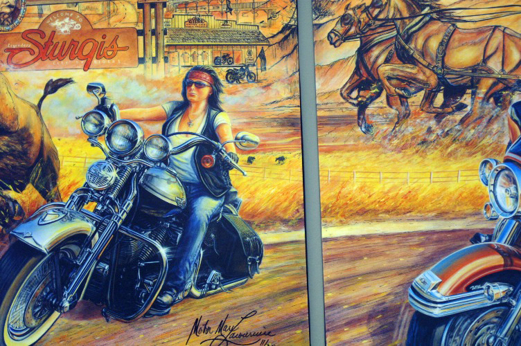 Three pieces of art that stand out in the museum are the Legends River Series by Motor Marc Lacourciere. Marc generously donated limited edition giclee prints of all three pieces in the series to the museum, and plans to donate prints of the remainder of the series – the final piece that will be released in conjunction with the 75th Anniversary of the Sturgis Motorcycle Rally.