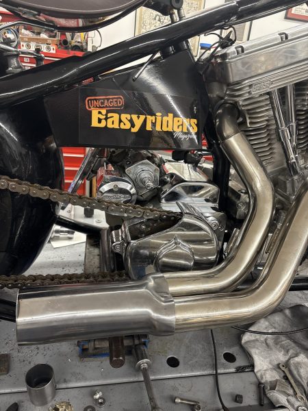 Someone asked what was happening in the shop. I’ll tell you, goddammit. I took the Hugh “Chopper” King Discovery bike out of the museum and decided I needed to ride it. Easyriders.com