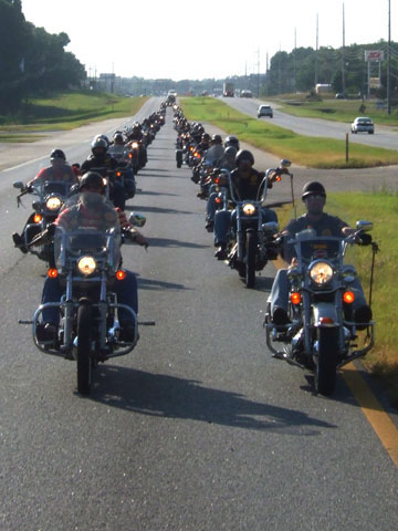 Jennings’ visitation and funeral brought people from all over the country, many of whom made the trip on the back of a bike. Several biker groups were represented, including The Alabama Riders. Waves of leather filed into the chapel that day and joined the sea of tie dye that was worn by Jennings’ friends. Jennings’ had a special love for tie dye shirts and bracelets and as a tribute, many people made t-shirts the night before to wear to the service. I’ll never forget walking into the chapel and seeing this huge intertwining and mixing of black leather and tie-dye.