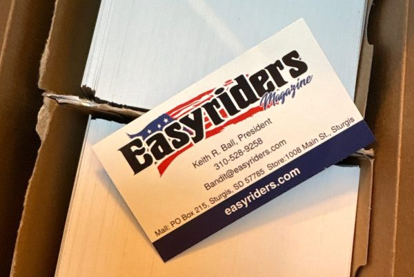 I received my new business cards today. We have a tremendous opportunity to save the Easyriders brand, but nothing will be easy. The magazine market has changed, the internet has changes, the world has changes, but there are still opportunities. We can make it happen, but we need your help.