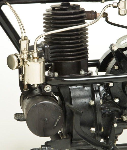 It’s not always the model of bike being restored, but the restoration process that shines. That’s the case with this scooter. This 1921 two-stroke Cleveland wasn’t the fastest, rarest, or most unusual bike of its era. It was a slow utilitarian, base-model, but Jim Watson restored every element of this machine until it was awarded 99 points, and he fought over that final point. “It’s the only mosquito fogger in the world with a seniors badge from the Antique Motorcycle Association of America,” said Don Whalen, antique motorcycle curator.