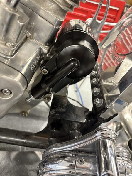 This puppy didn’t have an oil filter, so I went on Ebay until I found a complete one. Gotta watch out. There are cheap deals, but the bastards aren’t complete. I’m going to align and bolt in the engine. I’m waiting on some Paughco pipe pieces and then I’ll run the oil lines. I need to rewired it with circuit breakers and a new Cycle Visions ignition switch.