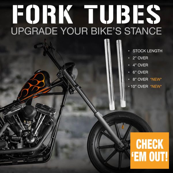 JUST IN FROM THE LOWBROW GANG–Get just the look you want with extended fork tubes.