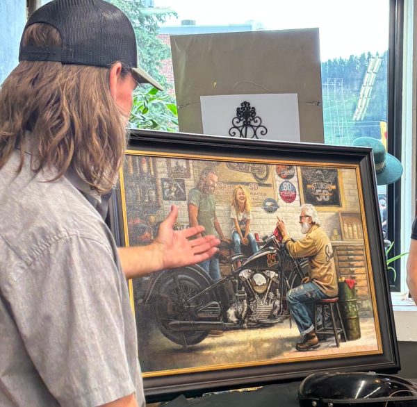 A magnificent piece depicting Gramps sharing Harley knowledge and stories with his son and granddaughter. Only 50 version of 36 x 24 Giclee Prints will be printed. Each comes hand signed and numbered with certificate of authenticity. Unframed – $1095.00, Framed – $1500.00.