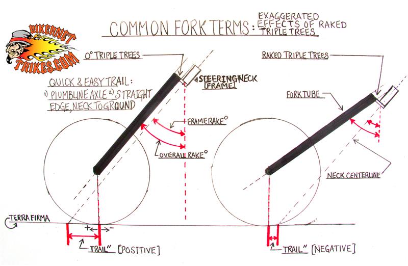 Less Trail: more responsive handling, especially at slow speeds, but at higher speeds can develop a dangerous wobble; twitchy and responsive.