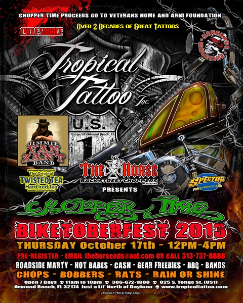 Biketoberfest 2013 started with a ride on Thursday morning with friends to the Tropical Tattoo Ride In Bike Show on US1 in Ormond Beach.